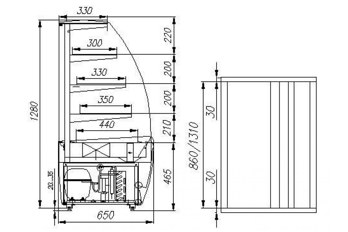 Витрина кондитерская Carboma K70 VM 1,3-1 LIGHT цвет по схеме (стандарт)