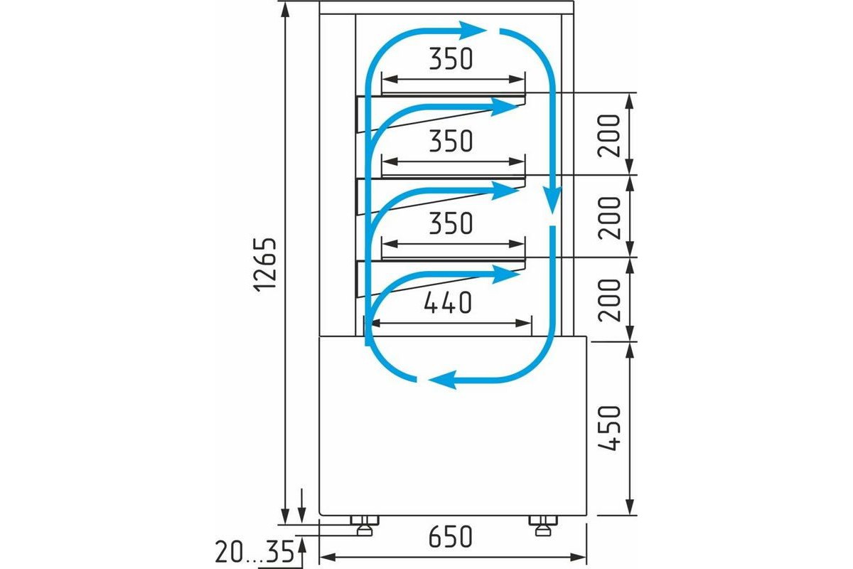 - глубина выкладки 440 мм + 3 стеклянные полки 350 мм, каждая с LED-подсветкой;