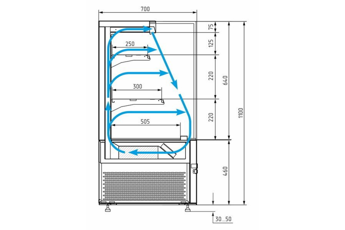 - глубина выкладки – 50,5 см + 2 полки 25 и 30 см,
