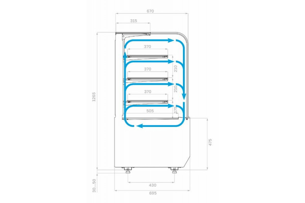 - Глубина выкладки 50,5 см + 3 полки по 37 см;