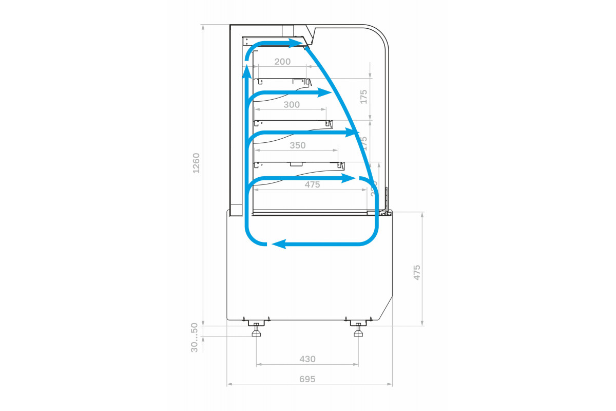 - Витрина предназначена для эксплуатации в закрытом помещении с естественной вентиляцией при температуре окружающей среды от +12 до +25 и относительной влажности не более 60%;
