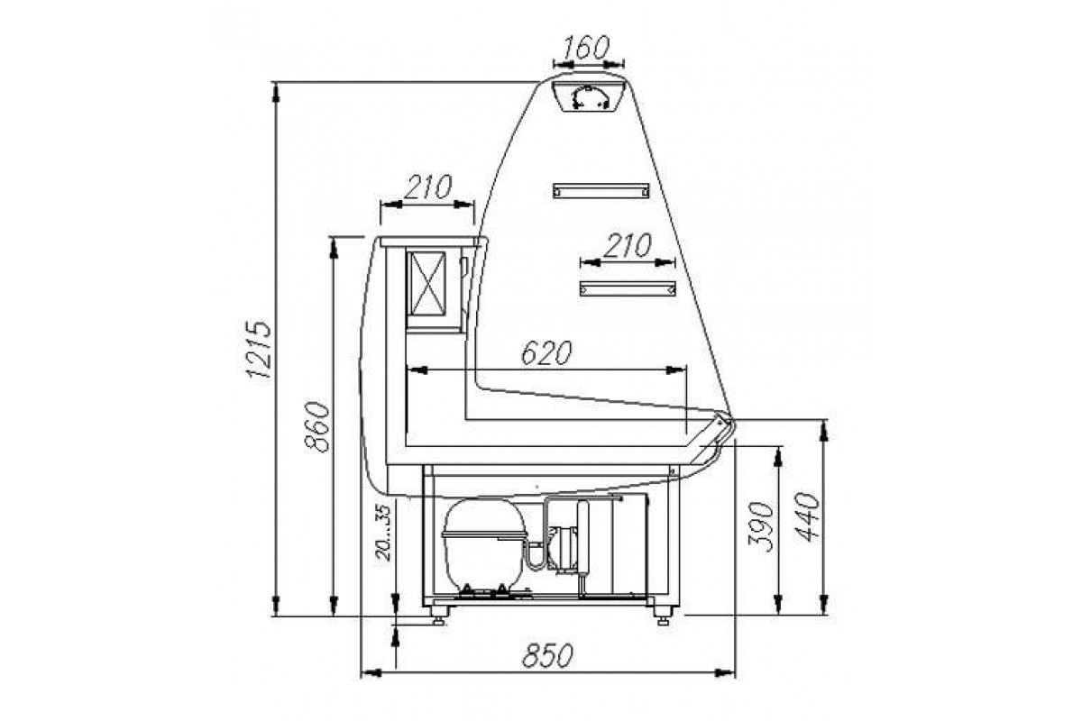 - материал производства презентационной поверхности и столешницы – нержавеющая сталь.