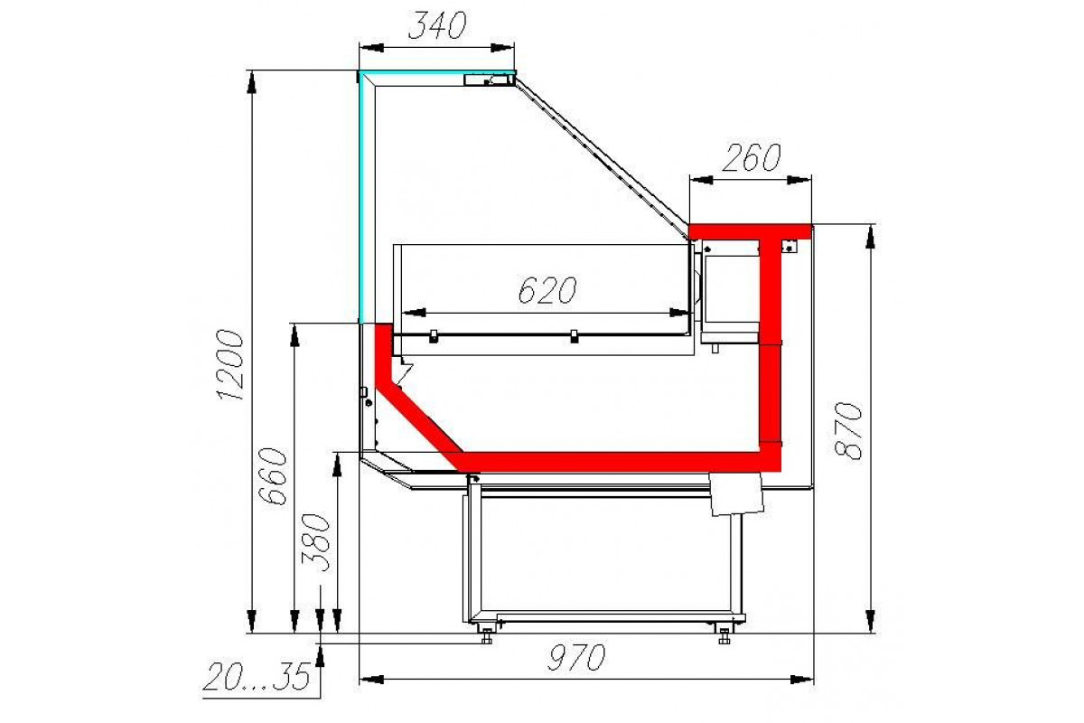 - экспозиционная поверхность и столешница из нержавеющей стали;