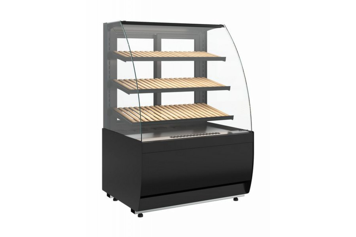 Витрина нейтральная напольная Carboma K70 N 1,3-1 LIGHT Bread (версия 2.0) (9005) используется в составе линии раздачи на предприятиях общественного питания и торговли для демонстрации и кратковременного хранения продуктов питания, готовых блюд и напитков, не требующих особого температурного режима хранения. Каскадное расположение полок позволит выложить больший ассортимент продукции. Оснащена боковыми прямыми и передним гнутым стеклом.