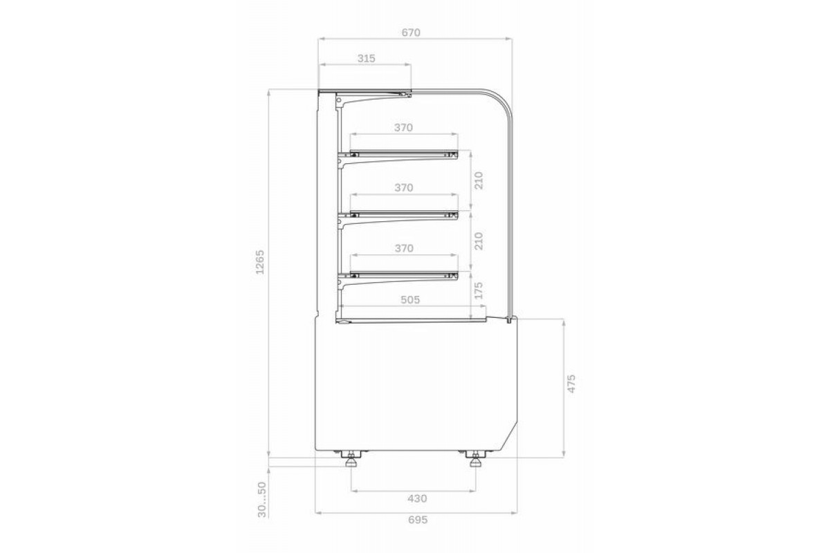 - Глубина выкладки базовой полки 505 мм + 3 полки с глубиной 370 мм;
