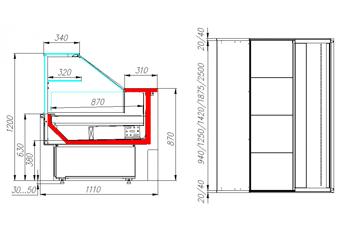 - Глубина выкладки 870 мм, глубина полки 320 мм;