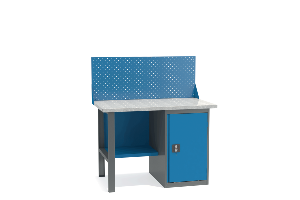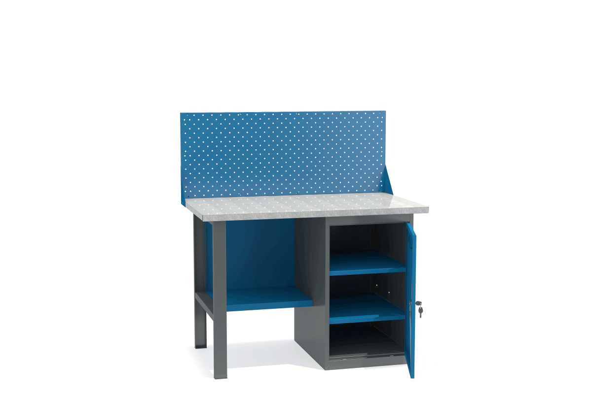 - Верстак имеет надежную модульную конструкцию с усиленной столешницей (плита МДФ 25мм, покрытая листом оцинкованного металла).